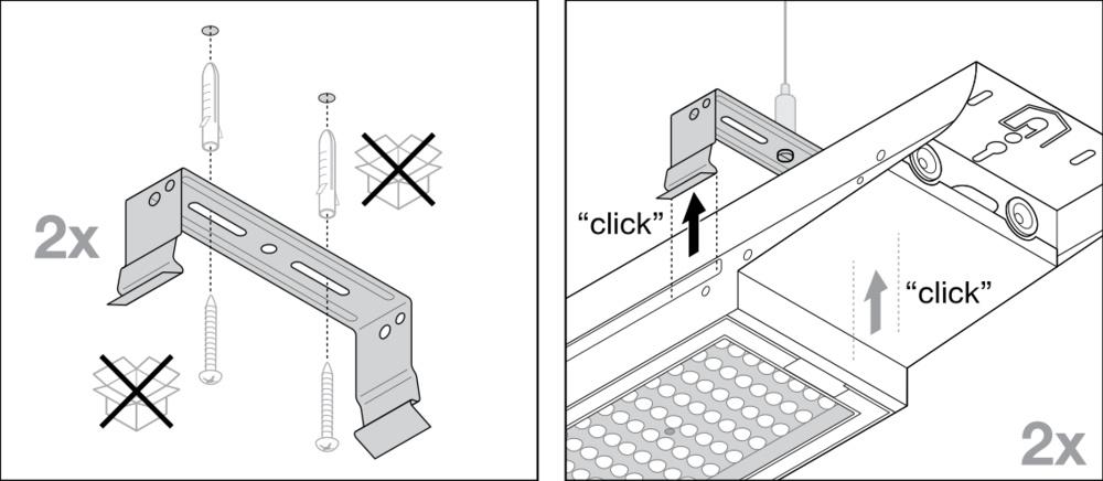 Aufhängungskit für LOW BAY FLEX. Produkteigenschaften: Seilaufhängung mit Klammer und 5 m justierbarem Stahlseil. Produktvorteile: Einfache Installation mit Aufhängebügel zum Einrasten. Anwendungsgebiete: Ersatz für Leuchten mit Quecksilberdampf- oder Halogen-Metalldampflampen. Lagerhäuser, Logistikhallen. Industrie- und Lagerareale. Discounter, Supermärkte. Sporthallen, Indoor-Sportanlagen (nur bei ballwurfsicherer Version). Technische Ausstattung: 5 m verstellbares Stahlseil.