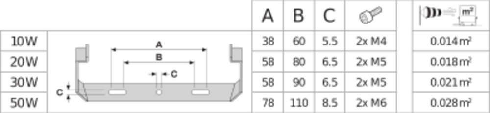 | Lichtstromerhalt bei mittl. Nutzungsdauer 50.000 h bei 25 °C Umgebungstemp. |